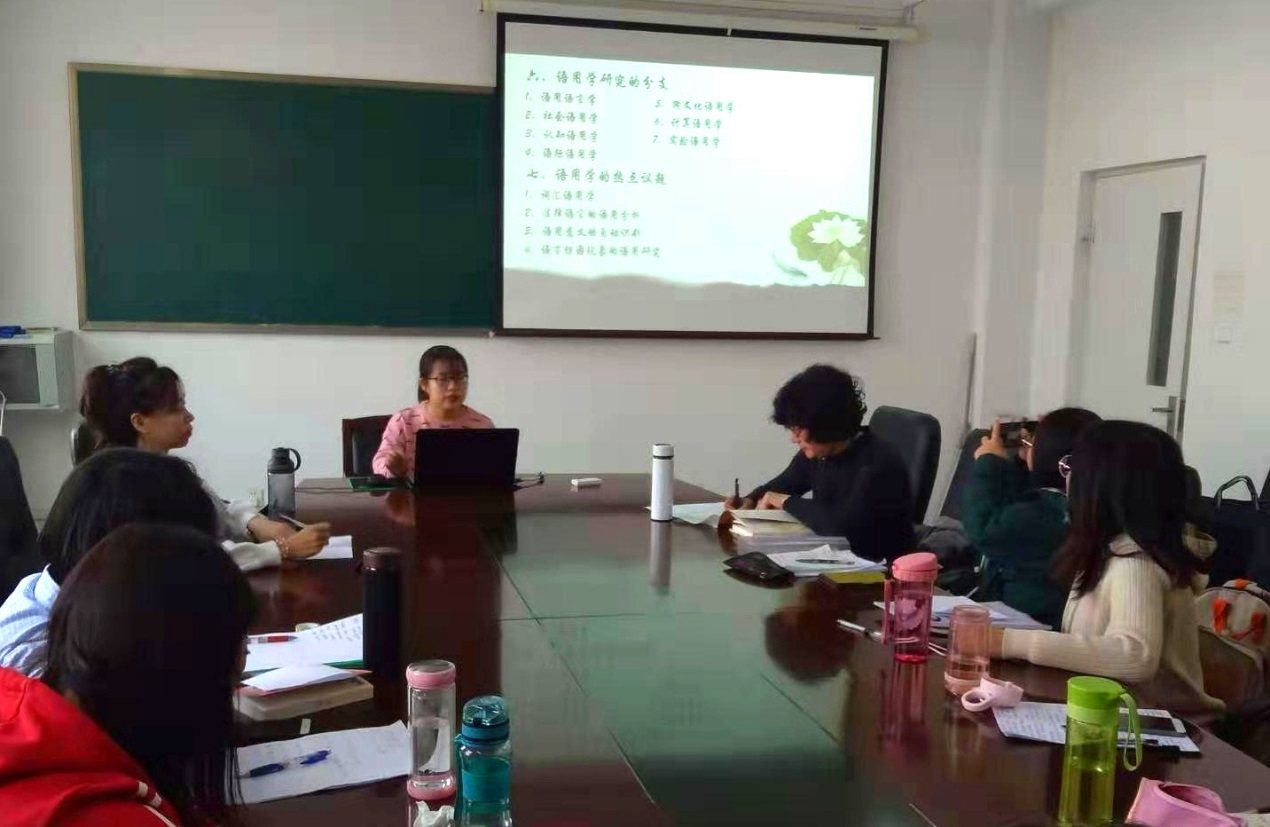 12月20日上午,在盛乐校区学院楼A315教室语言学与应用语言学学位点举行了“语言学经典文献读书会”。李秀教授、麻彩霞博士及本学位点的10位硕士研究生参加了活动。同学们分享了自己读书的感想并与老师进行了学术交流,本次活动取得了圆满成功。
