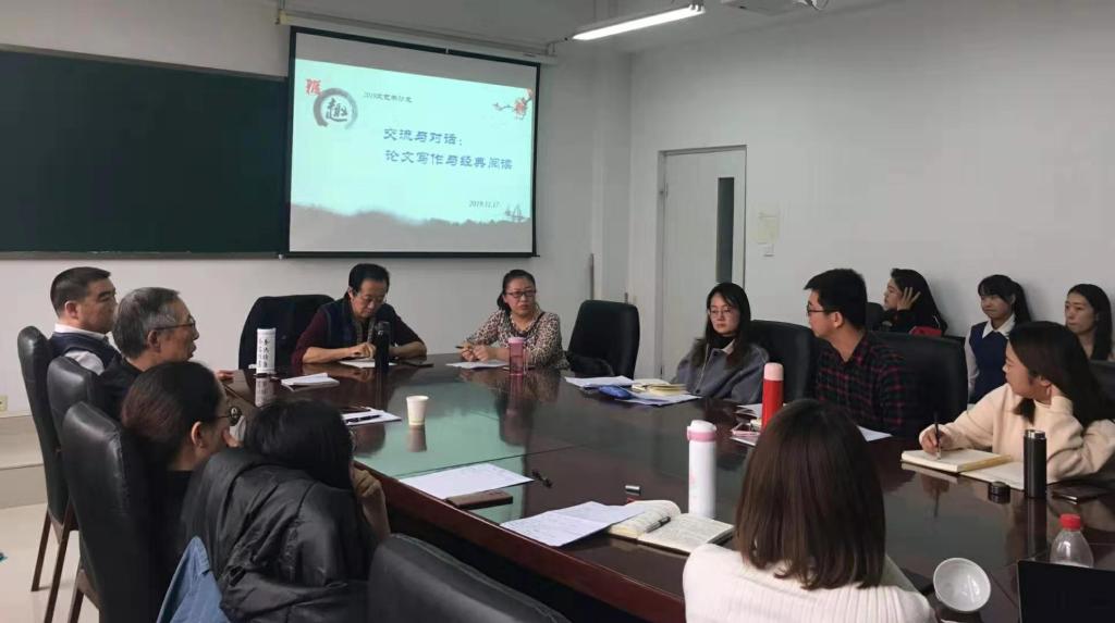 11月17日,文艺学学位点举办的2019文艺学沙龙在学院楼315教室举行。本次沙龙的主题是“交流与对话:论文写作与经典阅读”,参加本次沙龙的有文艺学专业万奇教授、张树天教授、张子程教授、吴玉英副教授及2017、2018、2019各级文艺学的同学。沙龙会上,学生与各位教授探讨了毕业论文困惑及困难,2019级学生汇报了自己的阅读情况,并就阅读经典书籍的读法、记法等问题与各位教授进行了深入交流讨论。通过本次会议,同学们积累了知识,扩大了视野,树立了良好的学术态度。