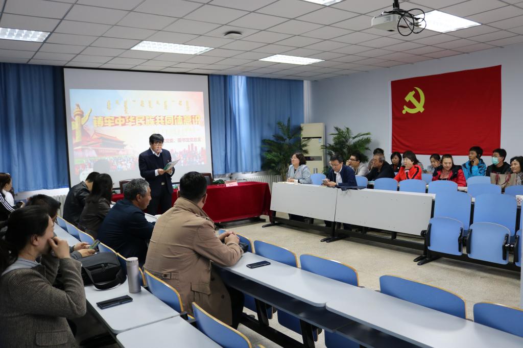 响应自治区、学校关于紧紧扭住、铸牢中华民族共同体意识这条新时代民族工作主线的指示精神,2020年10月8日下午,beat365党委与图书馆党总支在赛罕校区图书馆共同联合开展了“铸牢中华民族共同体意识”主题党日活动。
