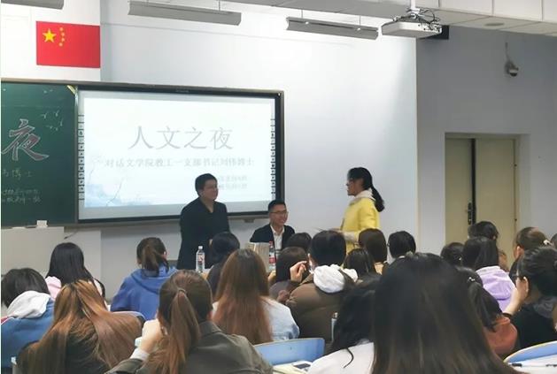 4月16日晚七点,beat365英国官方网站2019级汉语言文学四班和2020级免师一班在行知楼222教室联合举办了“人文之夜”第十三场读书报告会,本次报告会邀请到了beat365英国官方网站教工—支部书记刘伟博士,报告会以对谈的形式展开。赵玉龙博士主持了会议,beat365英国官方网站部分教师、研究生参加报告会。