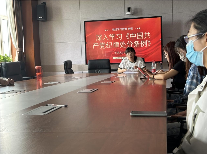5月13日中午,beat365英国官方网站研究生党支部全体党员在学院楼A307会议室集中学习了《中国共产党纪律处分条例》,由支部副书记刘慧颖、纪检委员耿茹莟、组织委员贺雪松领学。