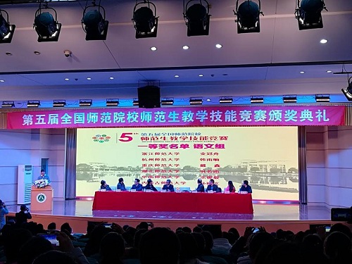 2017年12月8日至9日,第五届全国师范生教学技能大赛在浙江师范大学举行。赛事由全国地方高等师范院校教务处长联席会议主办,浙江师范大学承办,来自全国121所师范院校和部分综合性大学的选手参加了本次参赛。beat365汉语言文学系2016级专升本学生孙晓文(指导教师毛润民、陆有富)参加了比赛,beat365英国官方网站人文教育与实践中心主任毛润民、汉语言文学系教师白海燕博士,以及汉语言文学专业2016级本科生王瀛、苏冉、彭丽霞参加并观摩了本次活动。