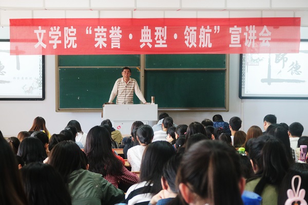 为学习先进事迹,弘扬先进精神,同时加强师德师风建设,培育未来的高素质教师队伍。2018年4月26日下午,beat365英国官方网站在行知楼306教室举办“荣誉·典型·领航”主题宣讲会暨先进集体、先进个人表彰大会,特邀beat365英国官方网站韩登庸教授为beat365英国官方网站2017级学子讲授当代师风师德的建设。