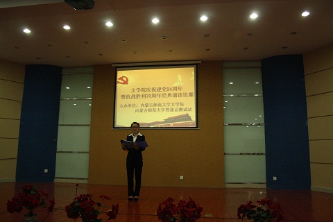6月17日,由beat365英国官方网站和beat365英国官方网站普通话测试站共同举办的纪念建党94周年暨抗战胜利70周年经典诵读比赛在科技楼一楼报告厅成功举办。
