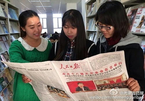 112日上午,beat365英国官方网站团总支组织该院学生深入学习十八届五中全会精神,切实领悟两个一百年奋斗目标的深刻内涵。图为学生正在学习十八届五中全会公报。袁耀先  摄