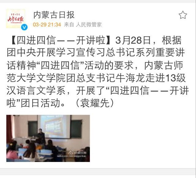 《内蒙古日报》微博消息: