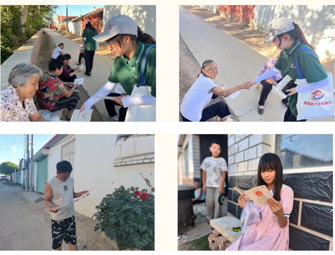 实践队深入基层,前往敖汉旗惠州街道喇嘛蒿村进行走访宣传,发放推广普通话宣传手册。实践队队员在与村民的亲切交谈中,了解村民们对普通话的知晓程度,向村民们讲诉普通话的重要性,为村民们学习使用普通话提供针对性指导。通过此次行动,当地村民深入了解了国家颁布的《关于推广普通话的指示》政策并且提高了对普通话的重视程度,有效促进了语言文化的传承和发展。