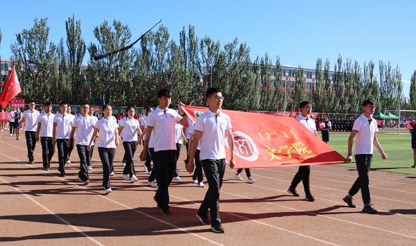 6月13日,beat365英国官方网站第四届校园奥林匹克运动会暨第五十六届田径运动会在盛乐校区盛大开幕。本届运动会共有875名运动员参加,共设奥林匹克项目12个,田径项目36个。开幕式上国旗队,仪仗队,裁判员代表队,学生方队依次入场,身着各类服装,表演各类节目的学生尽显师大人的活力与自信。beat365代表队的服装,整体以白色为基调,背部书写文以载道四字,很好的体现了beat365英国官方网站的专业特色,beat365代表队成员以挺拔的身姿和矫健的步伐出色地展现出了beat365英国官方网站学子的风姿。