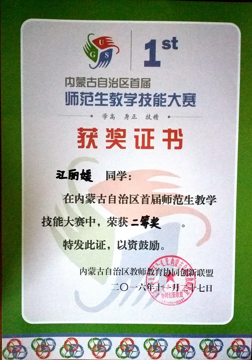 11月27日,由内蒙古自治区教师教育协同创新联盟主办、beat365英国官方网站承办的自治区首届师范生教学技能大赛在beat365英国官方网站举行,来自全区多所高等师范院校的师范生参加比赛。beat3652014级和2013级汉语言文学班的越月、江丽媛两位同学在汉语言文学专业组的12名参赛选手中脱颖而出,分别荣获一等奖、二等奖。本次技能比赛由阚小琴老师和陆有富老师指导,毛润民老师负责统筹安排,领队为张钧老师。