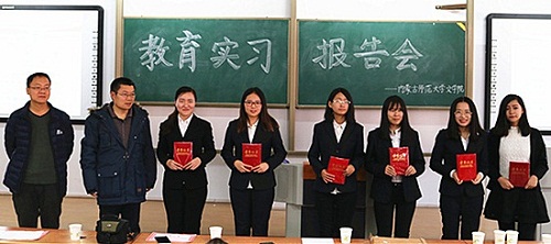 9月5日开始,beat36587名学生在土默特左旗民族中学高中部、初中部及小学部进行了为期四十五天的实习。在实习期间采取学院、指导教师、实习学校实习生组长和实习生宿舍长四级管理机制,对学生的实习活动、作息时间、行为规范等进行全方位的管理。经过学院的周密安排、精心组织,在土默特左旗民族中学的大力支持下,学生圆满完成了预期的各项实习任务,获得了语文教师专业能力的全方位发展。