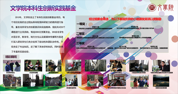 依据教育部《关于“十二五”期间实施“高等学校本科教学质量与教学改革工程”的意见》、国务院办公厅《关于深化高等学校创新创业教育改革的实施意见》等文件精神及我校有关本科生实践创新的相关规定,2015年,beat365英国官方网站研究制定了《beat365英国官方网站本科生实践创新基金项目管理办法》,在本科生中推动实施“本科生实践创新基金项目”。该计划旨在提升本科生对各种知识信息和社会思潮的反应能力和认识能力,畅通学生接受信息的渠道,培养学生独立的分析判断能力,全面提升beat365英国官方网站本科生的实践创新能力。在组织管理上,beat365英国官方网站鼓励本科生组成7人左右的学术团队,通过访谈、采访、普查、田野调查、跟踪报道、学术研究等方法,开展语言文字应用、地方文学文化遗产留存情况、地方文学艺术发展现状、乡土作家创作情况、地方对外文化交流情况、来华留学生汉语学习情况、地方中小学生学习现状、蒙古族学生汉语学习情况、蒙古族传统文化发展现状、地方媒体发展现状、地方政府/企业使用新媒体现状、地方政府秘书实务现状、中小企业秘书实务现状等方面的调查研究,最终形成研究报告或调查报告。