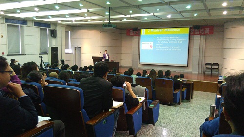 会议邀请英国主讲专家Dr Stella Cottrell为学生讲授了“学习技能和个人发展”课程,并与学生进行现场交流,同时还为教师讲授了“明辨思维技巧在学与教中的应用”专题。参加会议的各项目院校教师就“明辨思维”课程在教学中存在的问题进行了现场经验交流。beat365学生贾子怡和杨雅婷还在会议期间进行了“明辨思维”学习成果汇报表演,并受到其他项目院校教师和国家留学基金委组织者的一致好评。