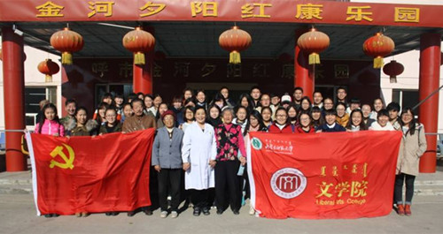 11月12日上午,beat36550名同学在志愿者服务队的带领下来到呼和浩特市金河夕阳红康乐园敬老院进行义工活动。