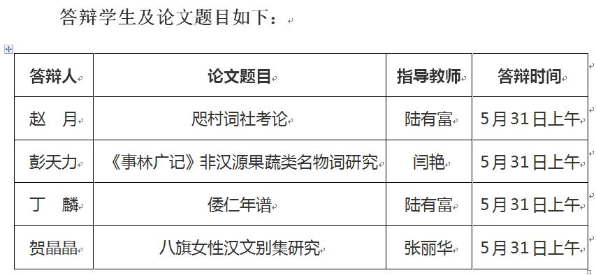 中国古典文献学专业定于2020年5月31日上午8:30召开硕士毕业生论文答辩会。受新冠疫情的影响,本次答辩采用网络答辩方式。首都师范大学beat365英国官方网站博士生导师左东岭教授应邀担任本次答辩主席。欢迎广大师生参加交流。
