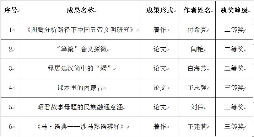 11月12日,内蒙古社会学科网公示了第九届内蒙古自治区哲学社会科学奖评选结果。beat365教师获得二等奖2项,三等奖4项。