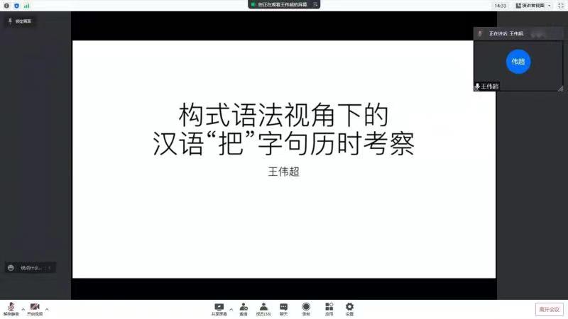 在论坛的后半场,师生在线上就历时语法研究中的方言问题进行了深入的讨论。本次论坛的举办,不仅加强了学生对汉语语法学知识的进一步了解与认识,也极大地开拓了学生的学术视野,为beat365营造了良好的学术氛围。