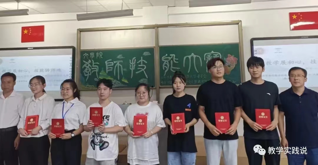 国之大计,教育为本;教育大计,教师为本。教师是立教之本、兴教之源,一支讲政治、有信仰、作表率的教师队伍对教育事业的发展和民族复兴大业至关重要。“教学展初心,技能铸师魂”,教师技能大赛举办的初心正是为了推动塑造这样一支优秀的教师队伍,从而推动教育事业的发展。正如德国著名哲学家雅斯贝尔斯所言:教育的本质是一棵树摇动另一棵树,一朵云推动另一朵云,一个灵魂唤醒另一个灵魂。相信在今后的教学生涯中,都能以我们来时的路,赠予学生沿途的灯!