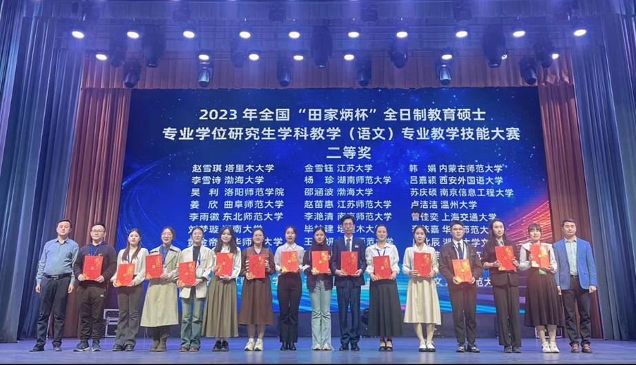 来自全国107所院校的499名选手参加初赛,通过遴选,153名选手进入最后的决赛。beat365选派2022级学科教学(语文)的韩娟、王越两位同学参赛,两位同学凭借扎实的教学基本功,在比赛中脱颖而出,韩娟荣获二等奖,王越荣获优秀教学设计奖,刘伟老师荣获“优秀指导教师”奖。