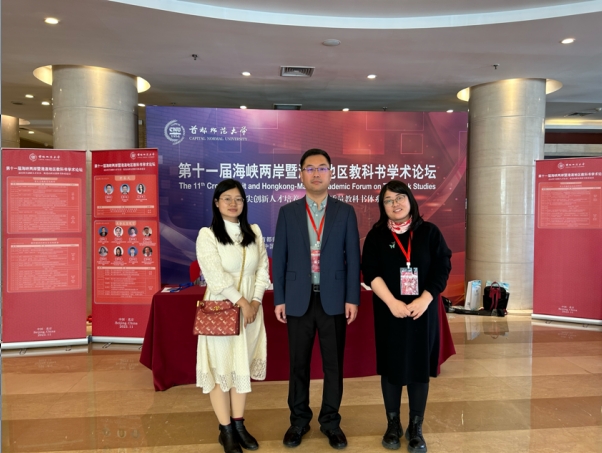 2023年11月10日到12日,首都师范大学教育学部、首都师范大学教育学院、首都师范大学中国基础教育教材研究院、中国基础教育教科书研究与评价中心、首都师范大学教科书博物馆共同举办了第十一届海峡两岸暨港澳地区教科书学术论坛。beat365副院长张钧教授,教师张丽娟博士、常雪纯博士应邀出席研讨会。会上,张钧教授担任了分论坛一“重大主题教育进教材”的主持人。