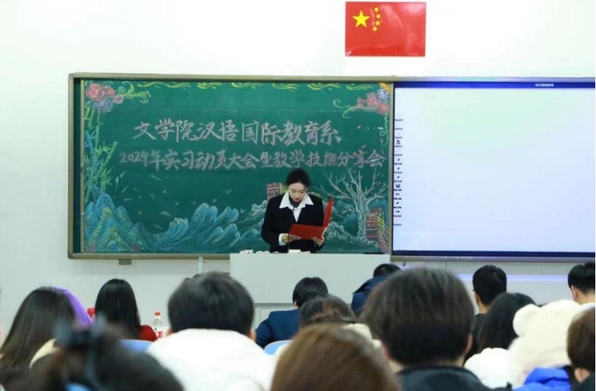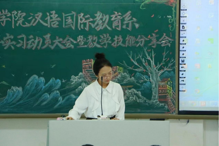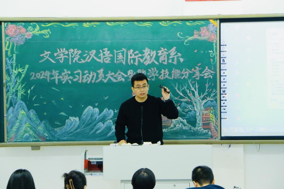为激发学生实习热情,引导学生做好实习准备,推进汉语国际教育专业学生实习工作提质增效,beat365于2023年12月21日上午,在盛乐校区行知楼422教室成功举办了汉语国际教育系2024年实习动员大会暨教学技能分享会。
