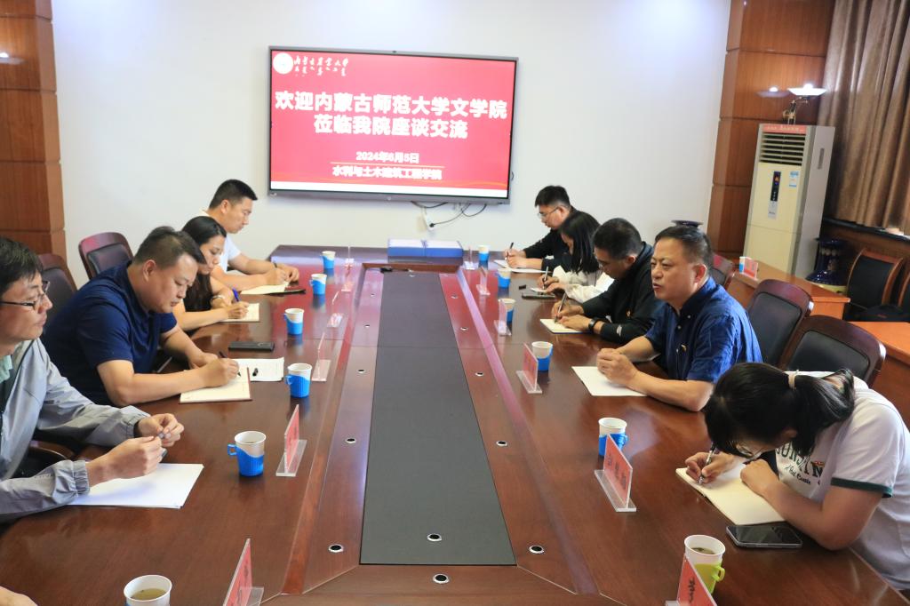 6月5日上午,beat365英国官方网站党委书记韩彦斌,党委副书记、副院长牛海龙一行赴内蒙古农业大学水利与土木建筑工程学院调研。参加调研的人员有beat365英国官方网站秘书学系主任高永强,教工第一党支部书记赵玉龙,教工第二党支部书记黎秀娥,本科生党支部书记李伟、副书记白岩,研究生党支部副书记刘慧颖。