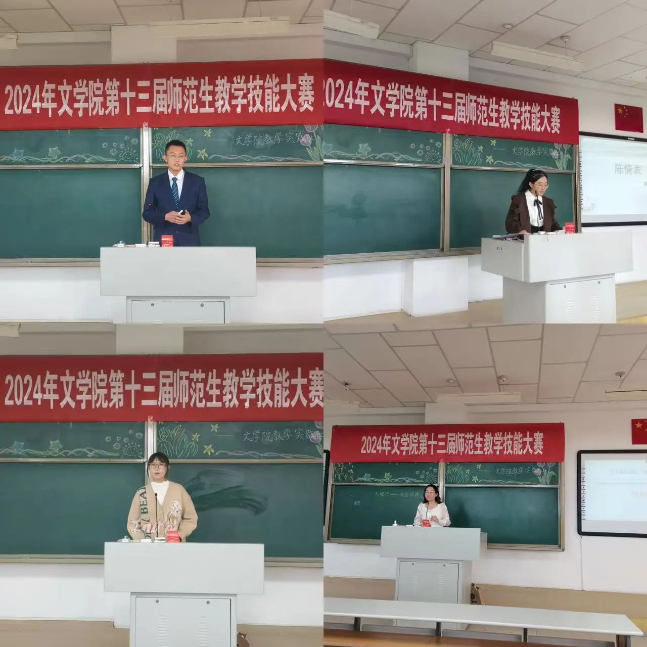 为进一步深化教师教育改革,构建以赛促练、赛练结合的师范生教学技能训练模式,切实提升beat365学生的教学基本功与教学技能,根据学院《关于举办第十三届师范生教学技能大赛的通知》相关安排,beat365于10月12日隆重举办了第十三届师范生教学技能大赛。大赛特邀学院资深语文教育专家毛润民老师担任评委会主任,汉语言文学系主任李瑞春、汉语国际教育系主任胡素莲、秘书学系主任高永强、人文教育与实践教学中心主任赵玉龙,青年教师张丽娟、常雪纯、王雪老师担任大赛评委。本次大赛分为班级初赛和院级复赛,通过层层选拔,最终经各班级初赛,有27名选手参加了院级比赛。