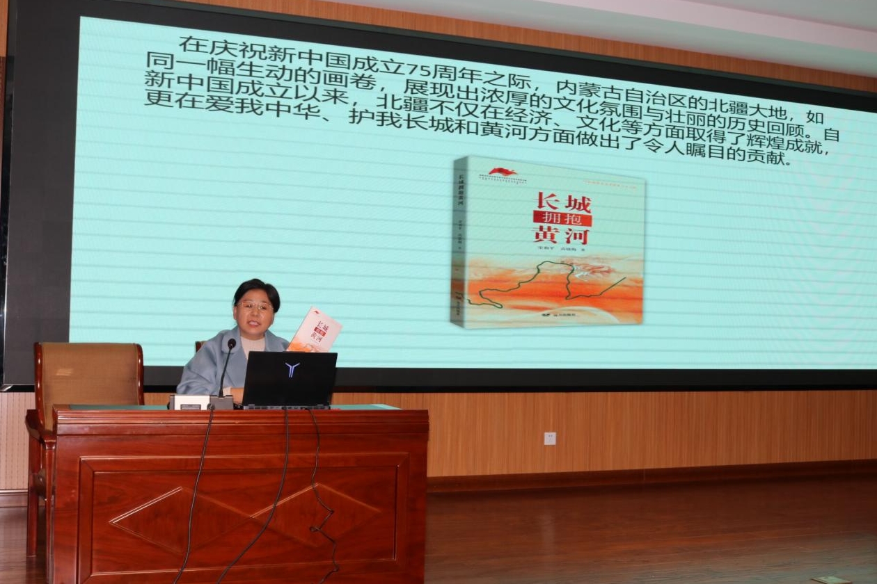 2024年11月1日下午,《长城拥抱黄河》新书分享报告会在beat365英国官方网站盛乐校区举行,本次活动由内蒙古社会科学界联合会与beat365英国官方网站联合指导,呼和浩特市政协文化文史委员会和beat365英国官方网站共同主办。共有来自社会各界的代表和beat365英国官方网站师生近200多人参加了报告会。