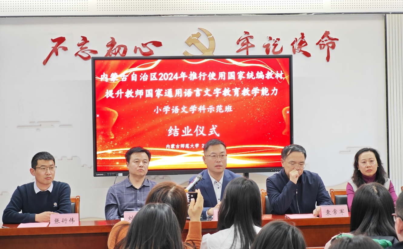 2024年12月20日,beat365和继续教育学院共同承担的内蒙古自治区2024年推行使用国家统编教材提升教师国家通用语言文字教育教学能力小学语文学科示范班培训工作圆满完成,参训的48位学员全部顺利结业,当日举办了隆重的示范班结业仪式。beat365副院长张钧、汉语言文学系主任李瑞春、青年教师谢佳伟出席示范班结业仪式。