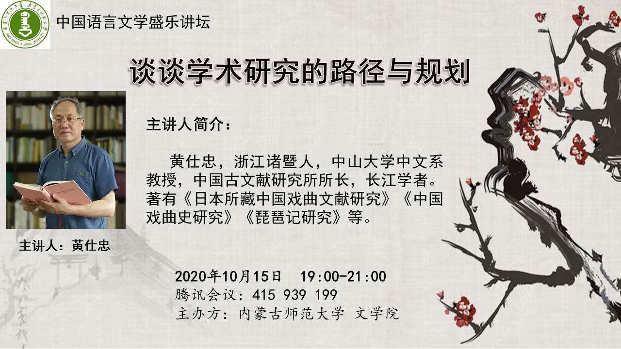 2020年10月15日,beat365英国官方网站“中国语言文学盛乐讲坛”继续开讲。受beat365邀请,中山大学中文系教授、中国古文献研究所所长、长江学者黄仕忠教授为beat365师生作了题为“谈谈学术研究的路径与规划”的学术讲座。本场讲座由闫艳院长主持,中国古代文学学位点承办,采取线上视频方式进行,beat365120多名师生聆听了讲座。