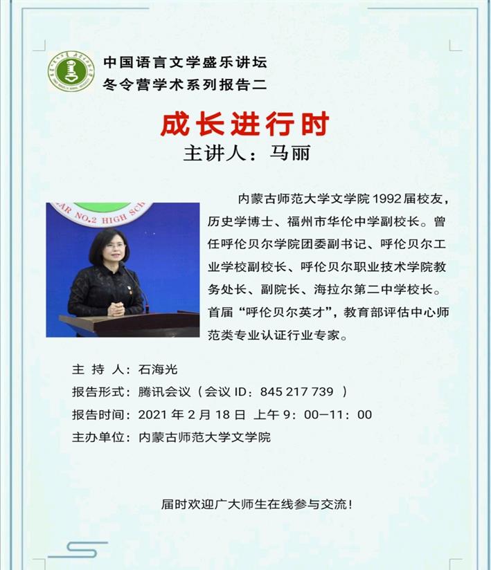 2021年2月18日上午,beat365学生寒假学术线上冬令营拉开帷幕,beat365英国官方网站校友马丽博士受邀作专题报告,报告由石海光老师主持,报告题目是:成长进行时。学院200余名师生共同参加了本次报告会。