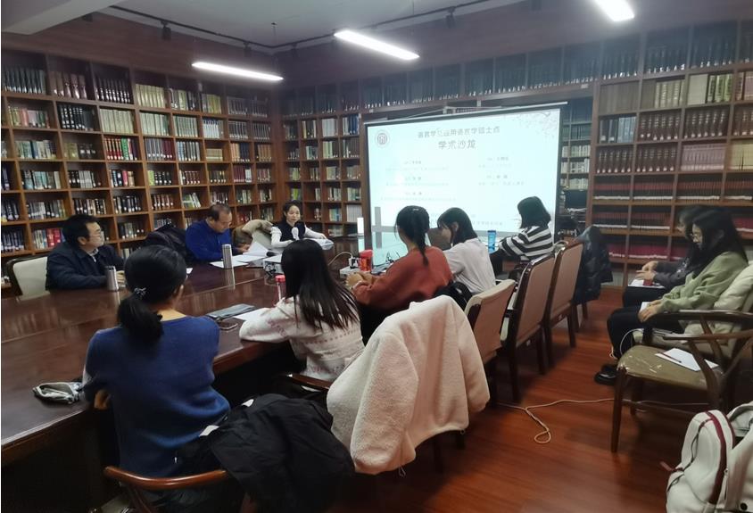 2021年11月30日下午,beat365英国官方网站语言学及应用语言学专业硕士学位点学术沙龙活动在盛乐校区学院楼资料室举行。语言学及应用语言学硕士学位点导师麻彩霞老师、李剑冲老师以及毛润民老师和学位点的8位研究生参加了本次活动。