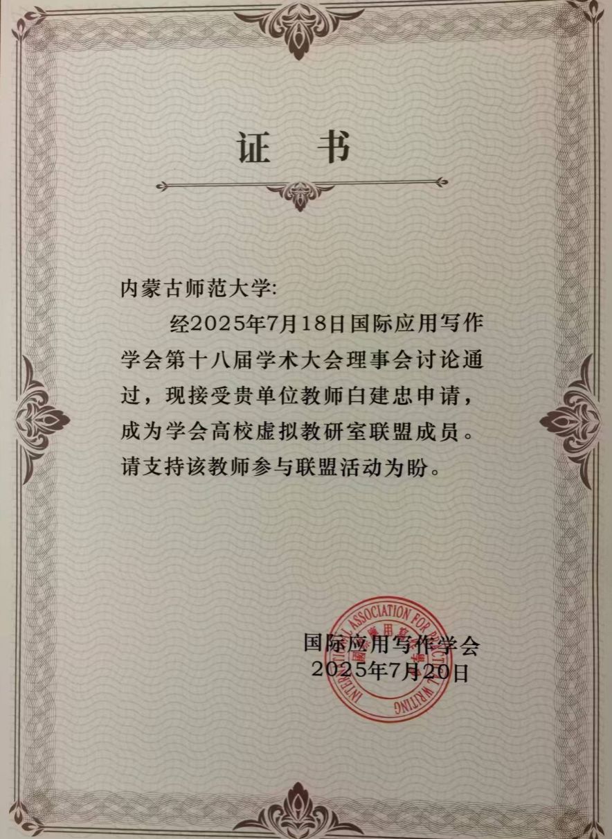 beat365万奇教授、白建忠教授应邀参加了本次研讨会。万奇教授作为国际应用写作学会的副会长,作了题为《论礼仪文书写作课的教学之道与教学之术》的主题学术报告。万奇教授被聘为本次会议论文评审委员会的优秀评委,并且作为第四分会场的学术观察员,对本组的论文作了精彩的点评。白建忠教授在自由发言阶段作了题为《明代章奏之体的演变》的学术报告。在本次会议上,beat365英国官方网站的写作教研室成为国际应用写作学会高校虚拟教研室联盟成员。