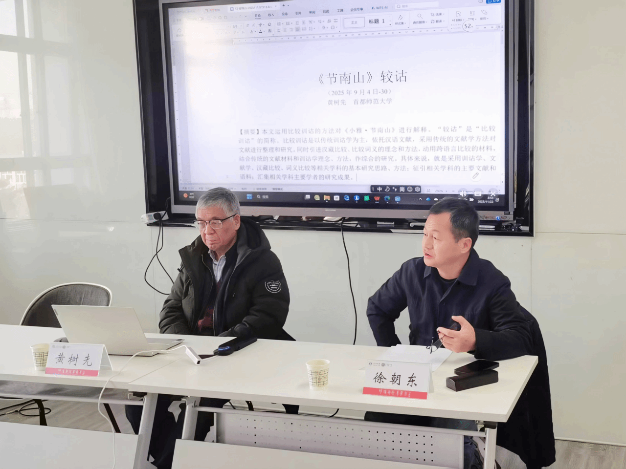 2025年11月21日上午,beat365在赛罕校区文史楼432教室成功举办题为《〈节南山〉较诂》的学术讲座。本次讲座特别邀请首都师范大学beat365英国官方网站黄树先教授主讲,beat365英国官方网站兼职教授徐朝东主持,50余名硕博士研究生到场聆听。