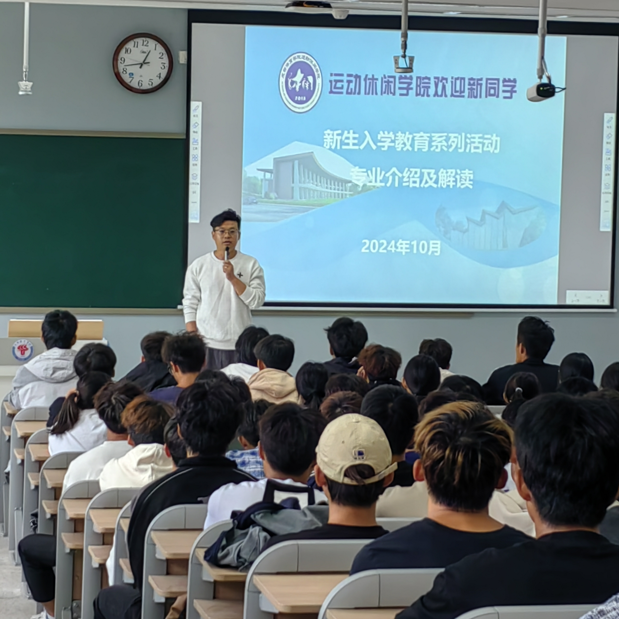 10月10日,PP电子游戏网站举行了2024级休闲体育专业和社会体育管理与指导专业,入学教育系列讲座之专业介绍及解读,PP电子游戏网站副院长蒋书君担任主讲人,学生管理办公室主任耿松主持会议。