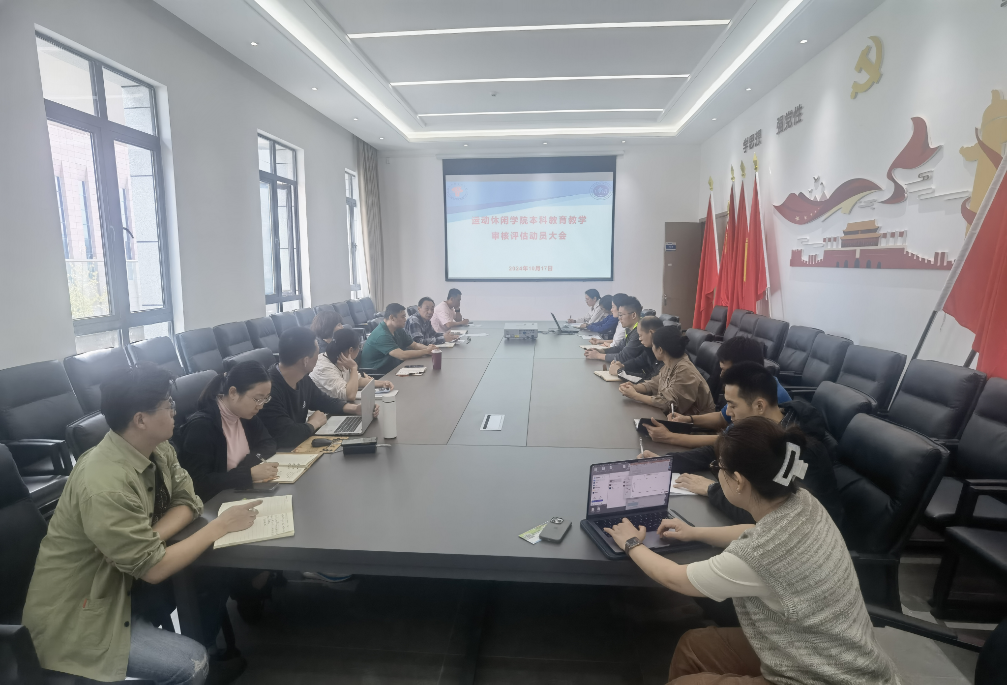 2024年10月17日,PP电子游戏网站在运动休闲馆三楼会议室组织召开本科教育教学审核评估动员大会。会议由院长曾洪林主持,学院全体教师参会。此次动员会旨在进一步提升学院全体教师对即将到来的本科教育教学审核评估工作的认识与准备,确保评估工作的顺利进行。