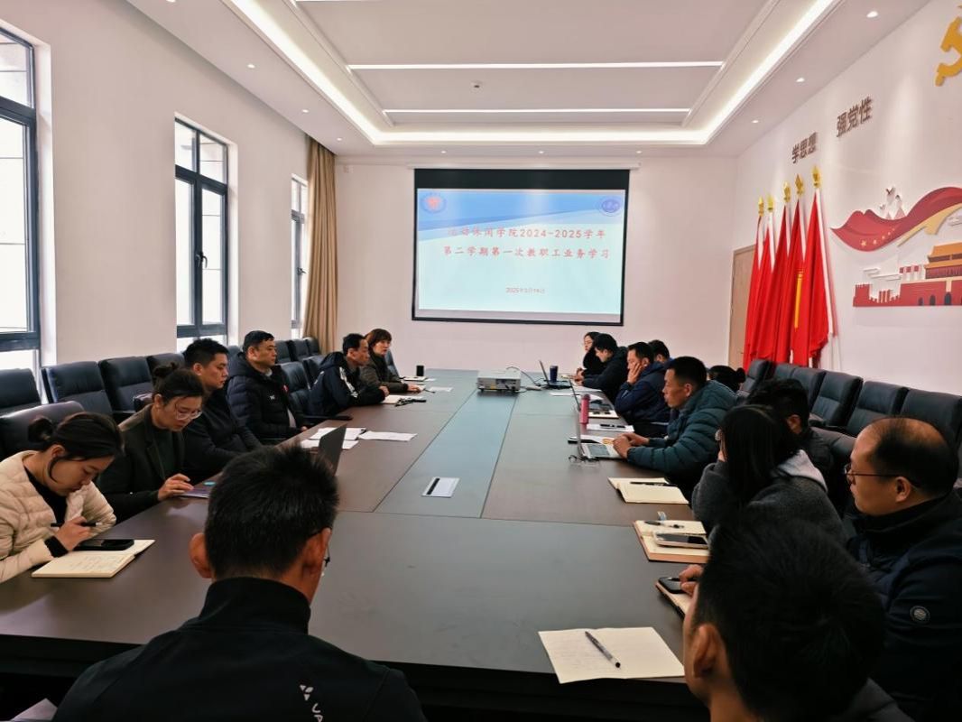 2025年3月14日中午,PP电子游戏网站在运动休闲馆三楼会议室组织开展本年度第一次教职工业务学习。会议由副院长蔣书君主持,全体教职员工参加。院长曾洪林在会上传达了学校教学工作会议精神,并围绕本科教育教学审核评估整改、质量保障体系建设等核心内容进行了深入解读。