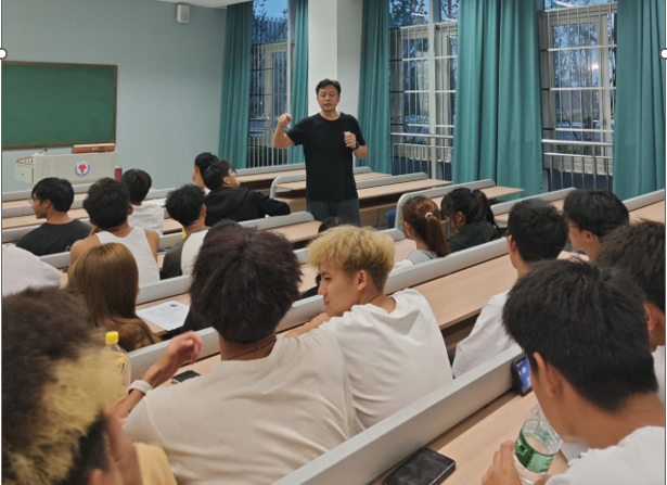 杨庆彬老师以游戏和活动开展等形式组织新生开展户外拓展体验,并对课程教学设备、器材进行了讲解,提升了新生对我院主干课程的了解和认知。