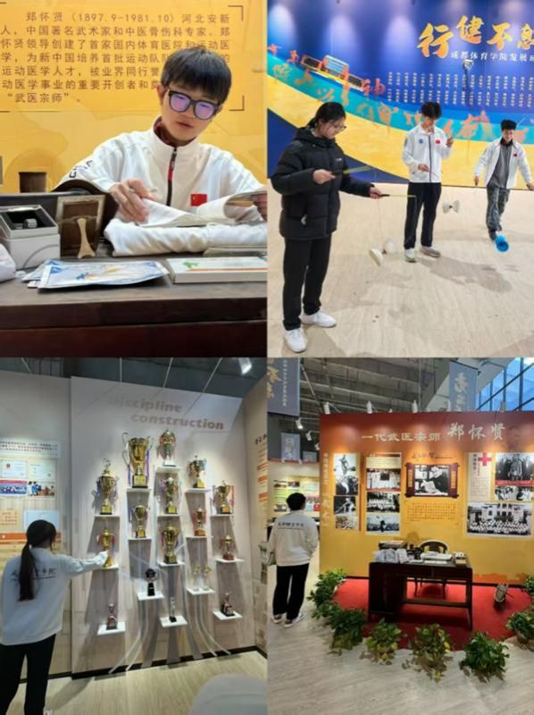 24级休体1班郜煜聪同学说:站在校史馆泛黄的《申报》剪报前,“四川省立体育专科学校”几个铅字灼痛了我的眼眶。八十余载风雨兼程的画卷在光影中次第展开:郑怀贤先生用银针编织的医武传奇,吴必显飞跃横杆时的矫健身姿,一代代师生在青砖场地上用汗水浇筑的体育丰碑。