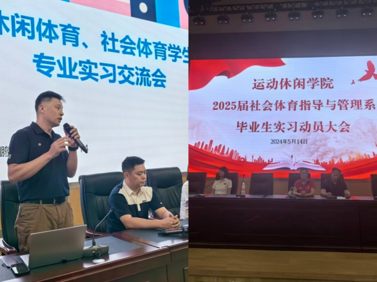 5月14日和5月16日,PP电子游戏网站分别于学术报告厅和A107举行了2021级本科生实习动员大会。PP电子游戏网站副书记樊莉、社会体育指导与管理系和休闲体育系全体专业教师、学管办老师和2021级全体学生参会。两次实习动员会分别从专业方向和实习纪律对2021级全体同学提出要求。