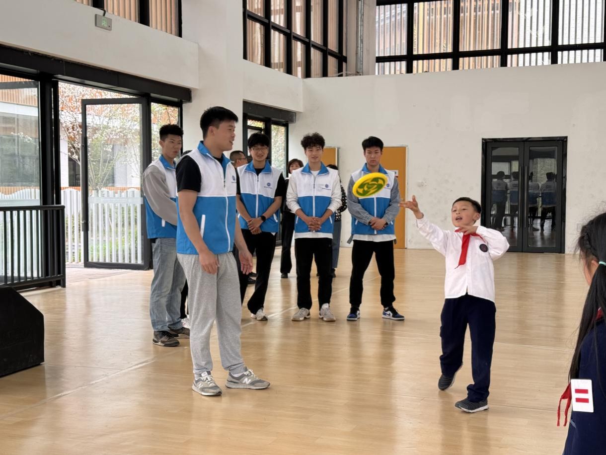 有了上周为七中东部学校学生上课的经验积累,这次志愿者们在活动组织和安排上更加得心应手。在这场充满活力的活动中,志愿者们首先引导孩子们通过拖拉机舞蹈进行热身,接着一起跳起了健身操。这些活动不仅锻炼了孩子们的身体协调能力,而且极大地激发了他们的参与热情。虽然实验小学的学生们此前并未接触过飞盘运动,但在志愿者们有序组织下,小朋友们热情参与到飞盘活动中,通过互动,孩子们学会了相互帮助、相互尊重,同时增强了集体荣誉感和责任感。