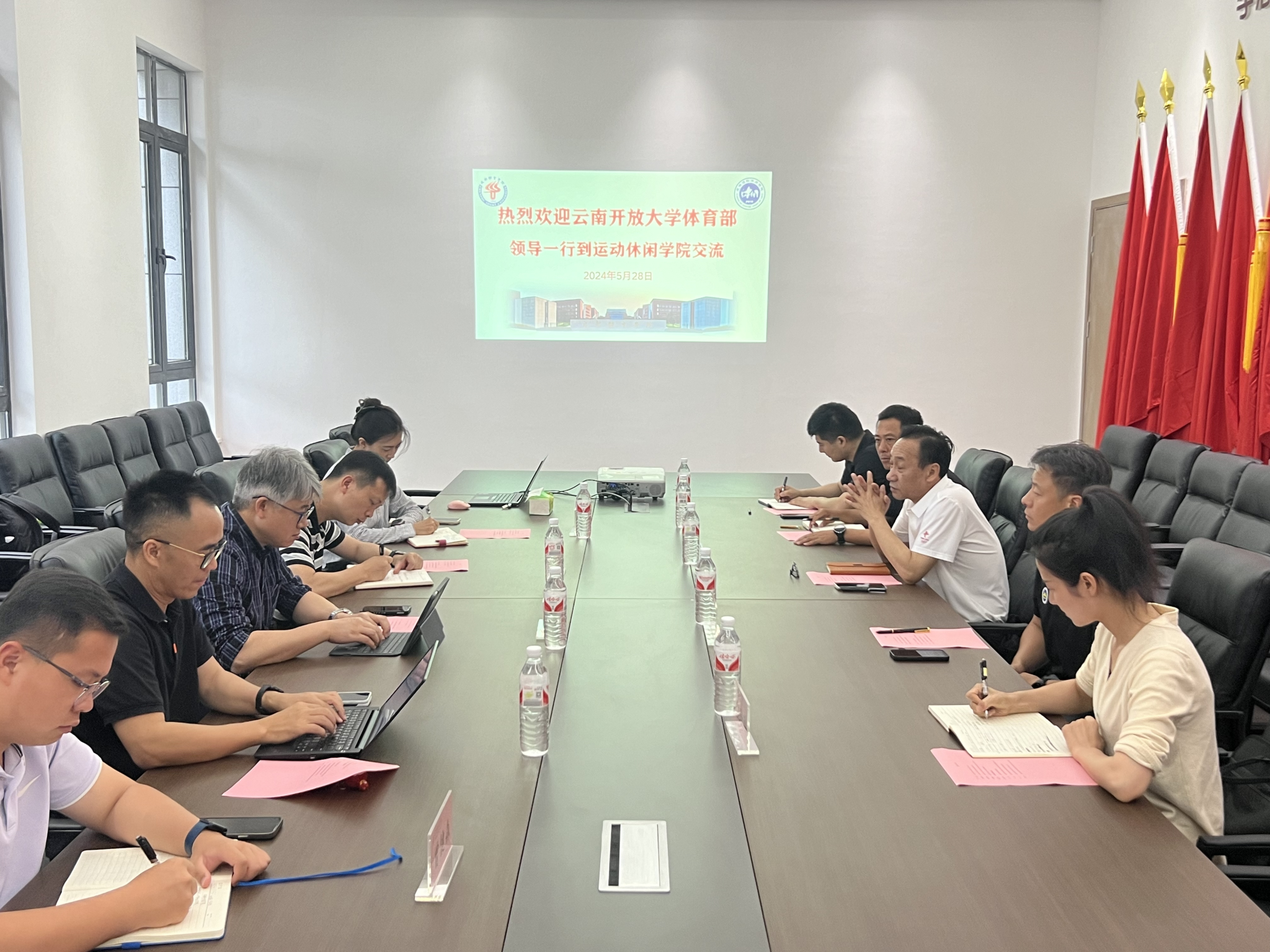5月28日上午,云南开放大学体育部李晓主任、张晓峰副主任等一行5人到PP电子游戏网站交流访问,院长曾洪林、各系、研管办、院办相关人员参会。
