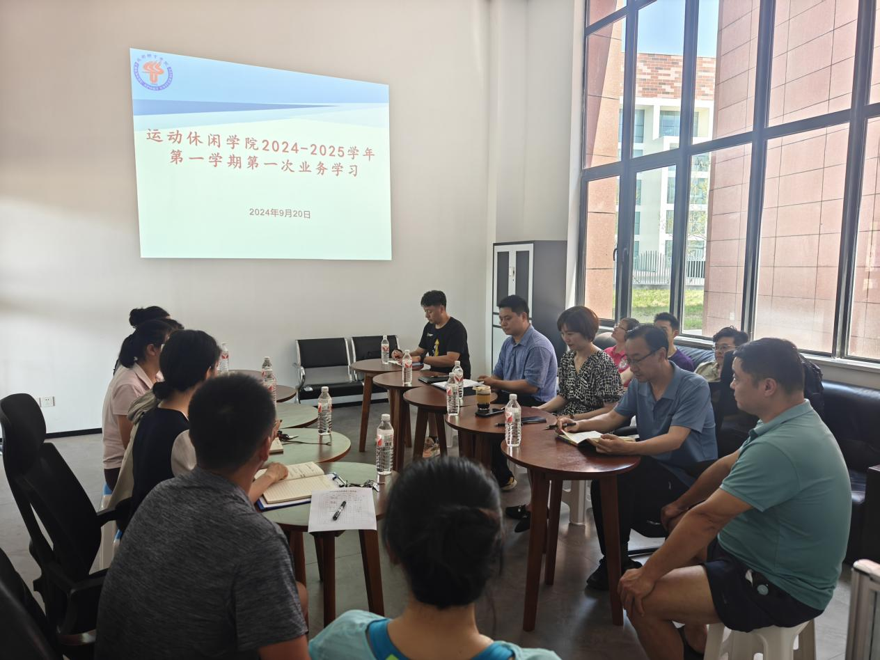 2024年9月20日,PP电子游戏网站在运动休闲馆休闲体育系会议室组织开展2024-2025学年第一学期第一次业务学习。会议由副院长蒋书君主持,学院全体教师参加。