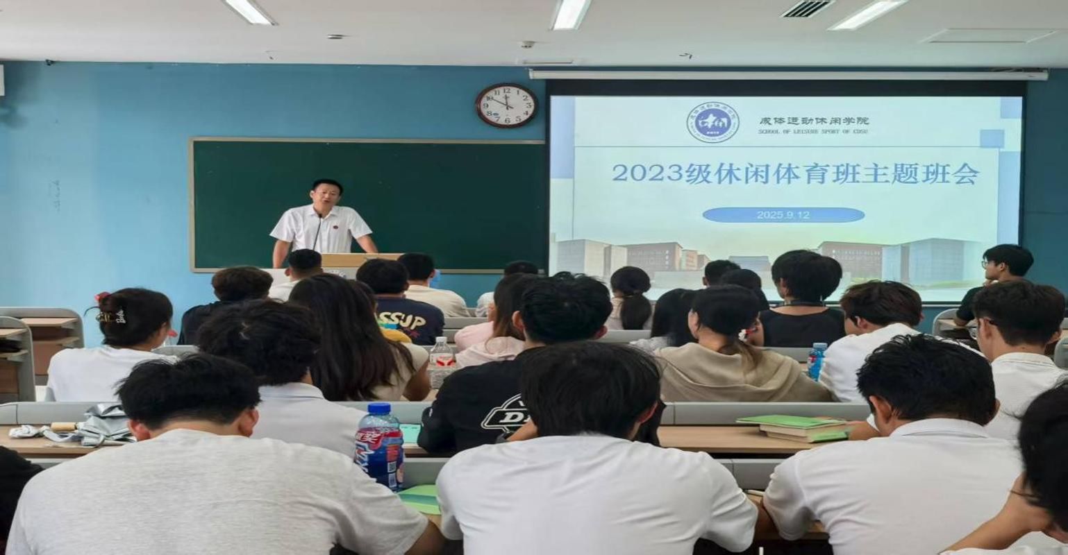 2025年9月12日,学校党委常委、副校长付东走进联系班级——PP电子游戏网站2023级休闲体育1班,参加“树新风、守纪律、担使命——启航新学期,共建文明安全校园”主题班会,围绕“爱校建校·从我做起”与70余名同学面对面交流。班会由班主任陈玥琳主持。